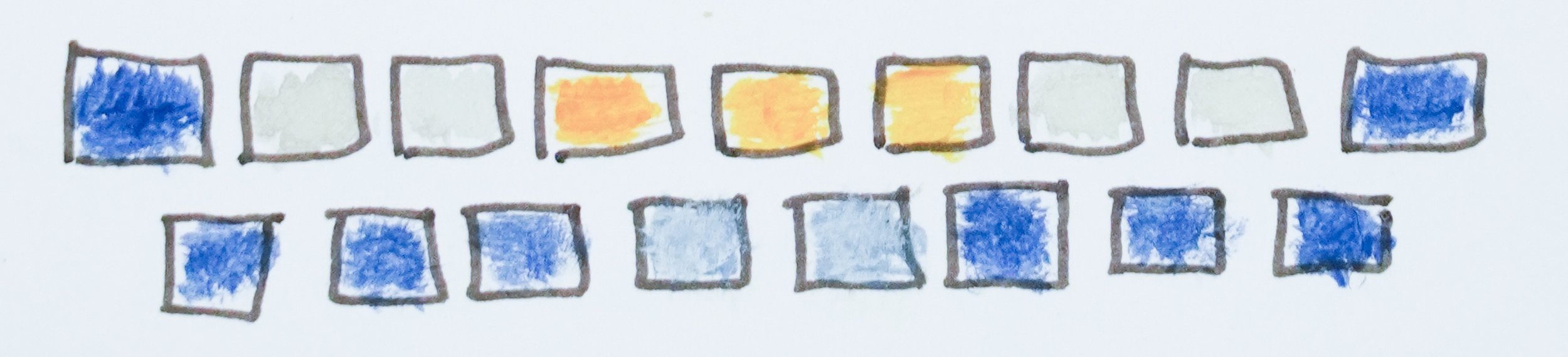 The yarn colors I have used are Night ocean, Mist, Smudged orange and Smudged teal.