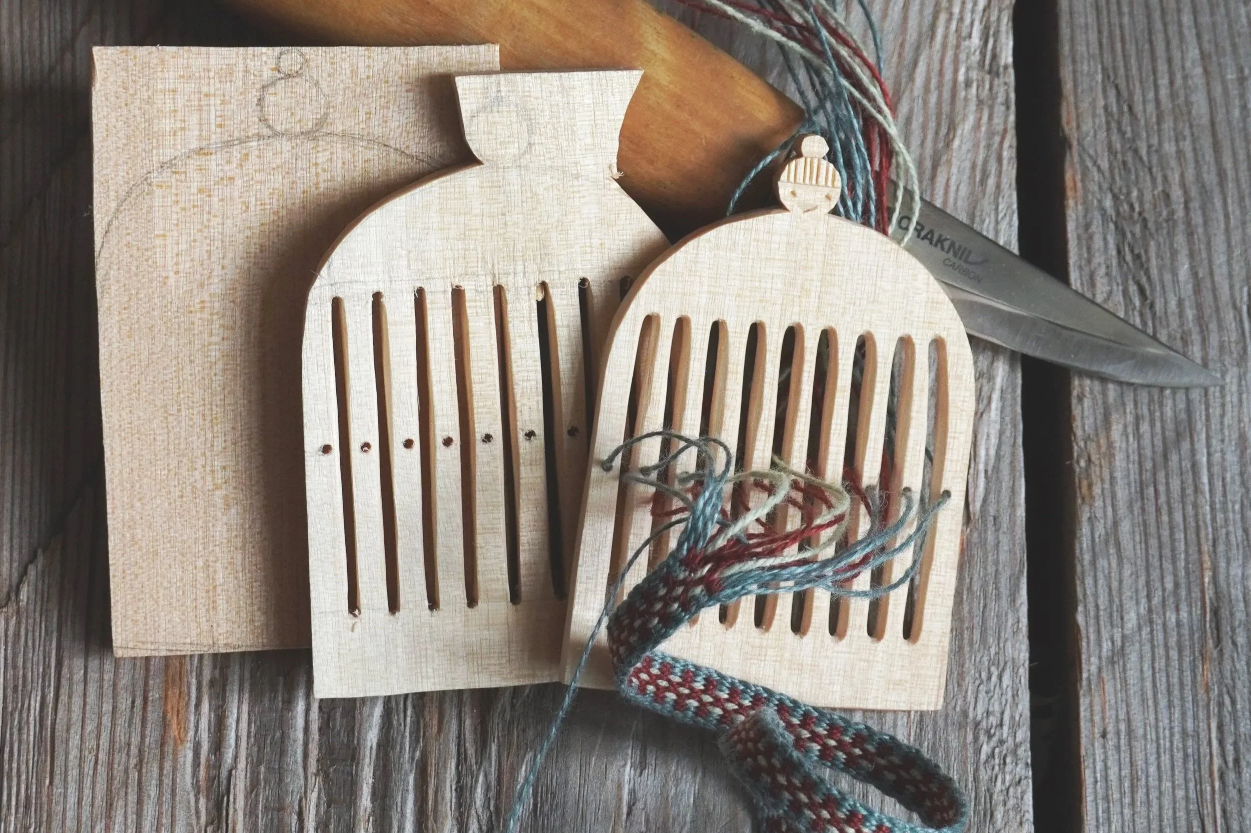 Carve your own heddle and then weave bands on it! In this class I will show you how I carve heddles out of birch wood, and guide you through the process of making your own one. In the second day we will weave repp bands on our new weaving tools and I show you how to design your own band patterns, control the tension of the weave and many other useful tips and tricks!
